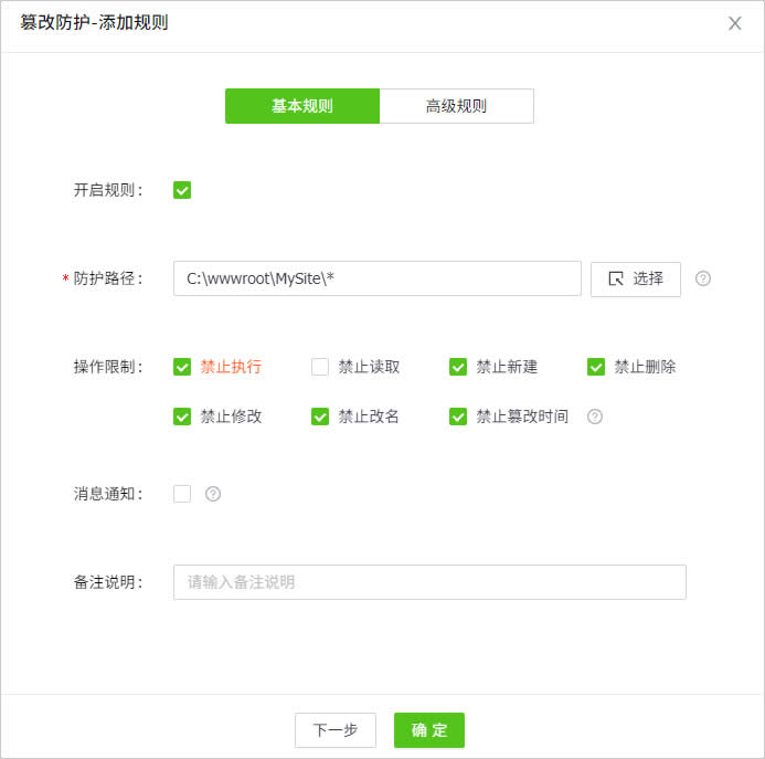 这样篡改防护规则就设置完了,下面开始设置动态脚本。