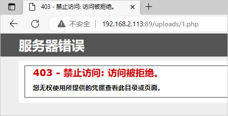- 此时访问uploads目录下的PHP文件效果如下,已经成功拦截。
