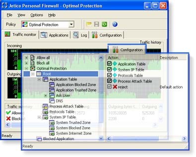 Jetico个人防火墙在操作系统的多个层次上建立过滤器。这使软件能够承受所有已知的攻击。