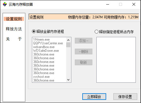 1、提供简单的释放功能,可快速释放进程的内存。
