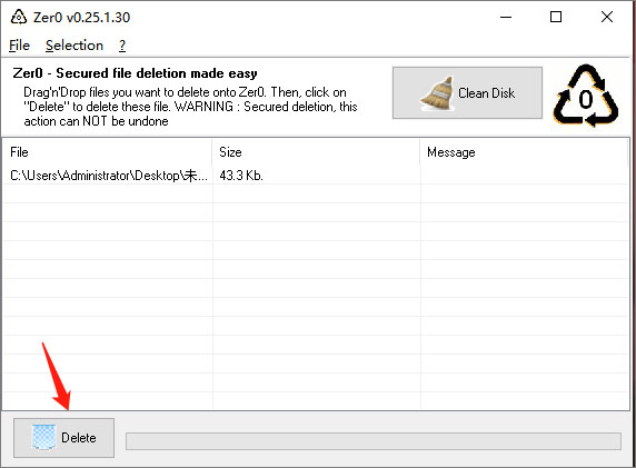 2、安装完成后启动,将要删除粉碎的文件拖入界面,点击【Delete】按钮即可。