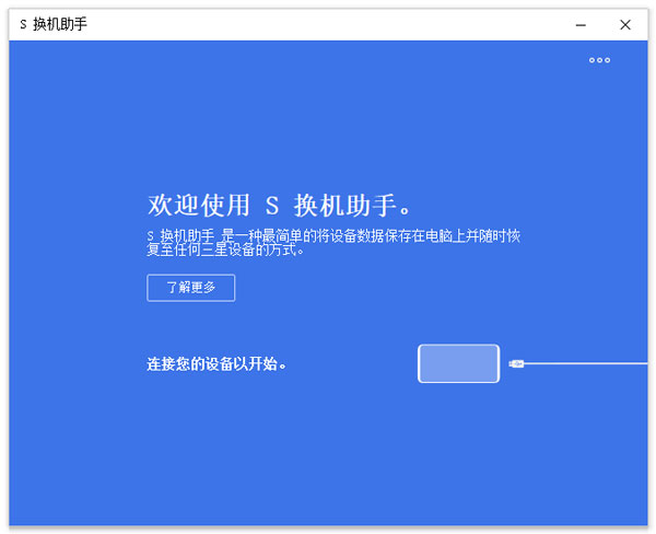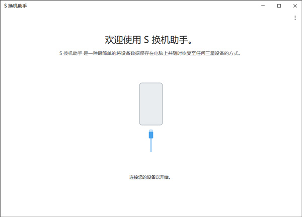在电脑上运行S 换机助手软件,并使用USB线缆将您的全新三星设备与电脑相连。