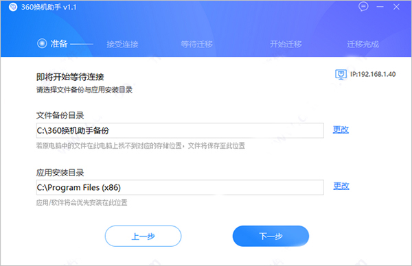 1、软件安装完成后,点击【这是新电脑】进入这个界面。这里可以选择【转移过去的资料临时先放在哪里】以及【在新电脑上软件要安装到什么位置】。您可以根据自己的需要选择【存放位置】,或直接点击【下一步】