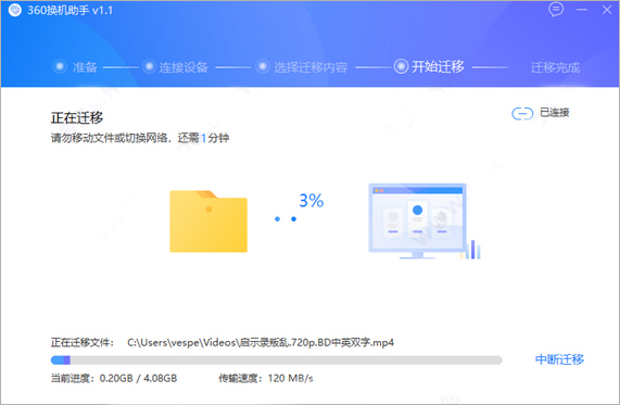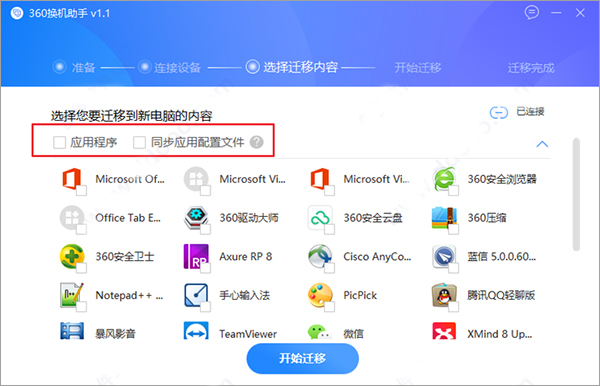 6、选择完点击【开始迁移】就行了。传输期间请尽量不要操作电脑,建议您在不需要操作电脑的时间段进行迁移
