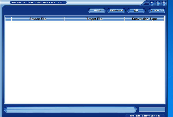 Amigo Easy Video Converter(阿米果视频通)是一款容易使用、功能强大的视频文件转换工具,程序可以帮助你快速的将所收藏的视频文件转换为不同的多媒体视频文件格式,支持将AVI转换为DIVX、MPEG、VCD、SVCD、DVD、WMV、ASF等文件格式,将MPEG转换为AVI或者DIVX,或者将MPEG视频文件在PAL和NTSC两种文件格式中进行互相转换,另外程序还支持将JPEG、BMP等图片文件格式转换为AVI视频文件格式的操作,功能十分全面,有需求的朋友不妨下载体验!