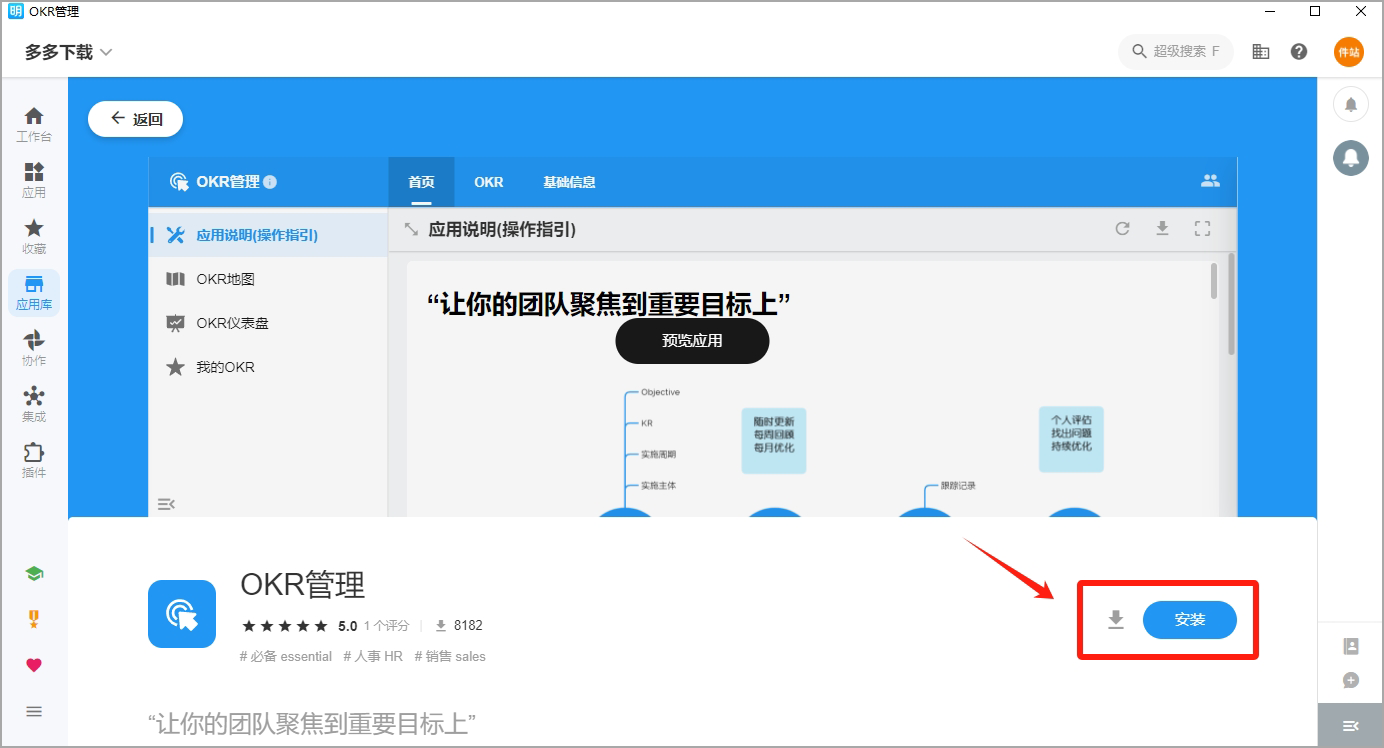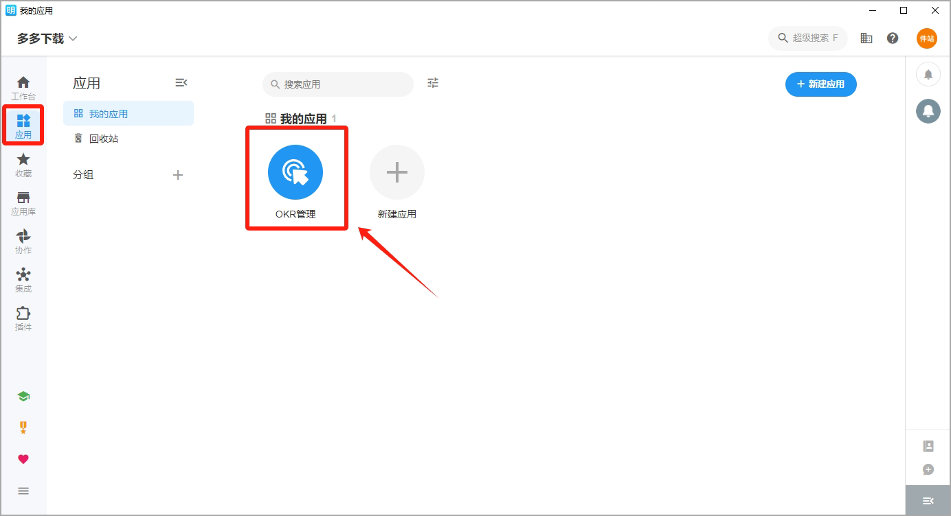 4、安装好的应用会显示在自己的应用工作台
