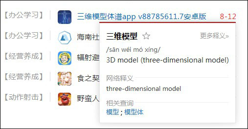 新增图片词典,用搜索引擎技术实现结果单词-图片相对应,帮助您更好的理解词汇。