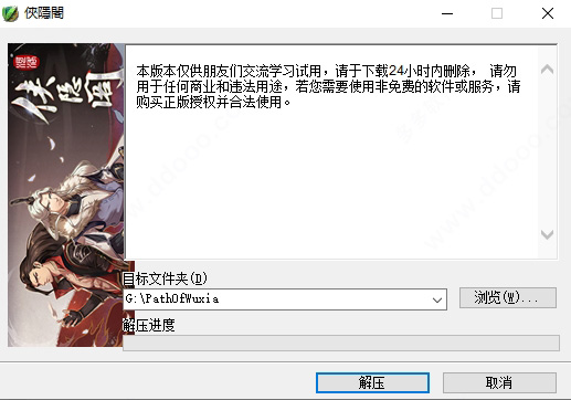 1、下载并解压本站提供的游戏文件,双击PathOfWuxia.exe开始安装游戏;
