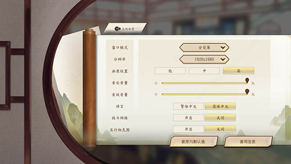 4、进入游戏后小编建议先去系统设置中调整相关的参数,建议开启全荧幕,体验沉浸式游戏,画质可选低、中、高,显卡好的选择高,还能调整声音的大小;