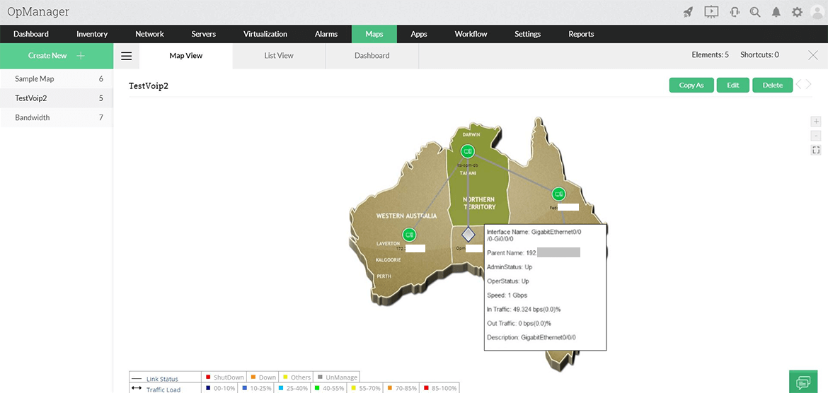 通过网络发现自动发现交换机、路由器和防火墙等网络设备,并监视网络流量、错误和丢包率、缓冲命中率等等关键的性能指标。你可以获得每一个接口和端口的可用性报表。使用交换机端口映射工具,你可以获取连接到每个交换机接口的设备列表。你还可以按照你的实际网络情况创建视图和图表,实现网络可用性的可视化。