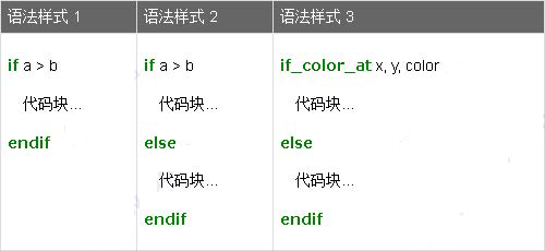 if_color_at 条件语句比较特殊,用来判断屏幕上一个坐标(x, y)上的像素RGB值是否等于color。