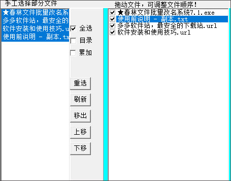 6、按照指定模式重命名文件 如自动添加序号 保留原文件名;
