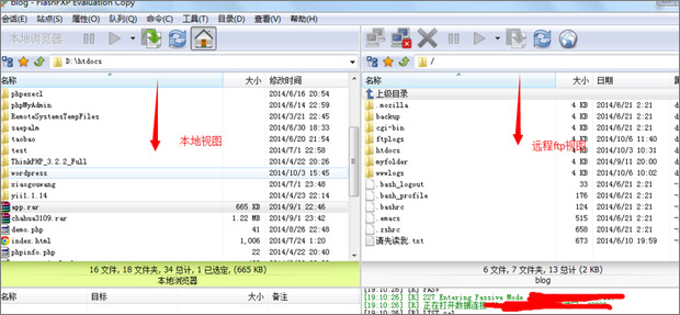 7、连接上站点之后,确认好本地目录中需要上传的文件位置,再在远程目录选取上传目录位置。