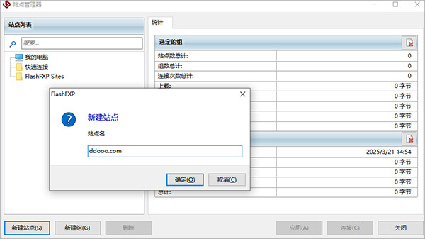 同时flashfxp软件具有避免空闲功能,防止被站点踢出;可以显示或隐藏“隐藏”属性的文件、文件夹;支持每个站点使用被动模式等。在实际应用中,有时需要统计出从某个FTP站点上传、下载的数据情况,这可以使用flashfxp的统计功能,按下F4快捷键打开站点管理器,在左侧选中要统计的FTP站点,然后在右侧切换到“统计”标签,在这里就可以看到该FTP站点上传、下载的总字节数。单击“重置”按钮可清除记录。ps:小编带来的flashfxp烈火汉化绿色版,基于官方便携版制作,去联网验证,加入注册密钥文件,去升级提示弹窗,用户无需安装双击即可运行,且无需用户手动激活或破解,正常打开即可永久免费使用。