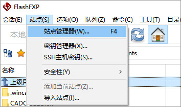 4、在主菜单栏,点击“站点”->“站点管理器”,快捷键为F4,将弹出站点管理器窗口。