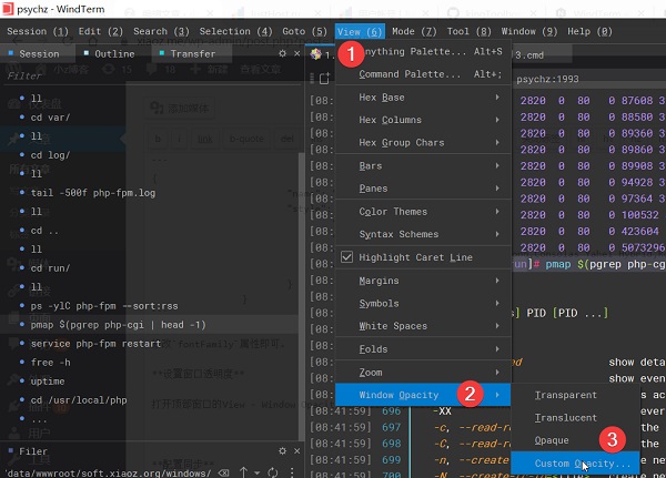 打开顶部窗口的View – Window Opacity – Custom Opacity,根据喜好进行设置,如下图。