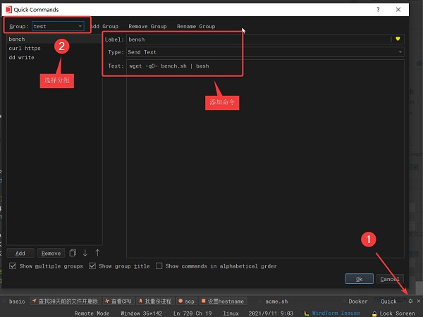 挺实用的一个功能,可以将常用且难记的命令添加到快捷命令中,方便下次快速使用。点击右下方齿轮按钮,根据提示添加即可。