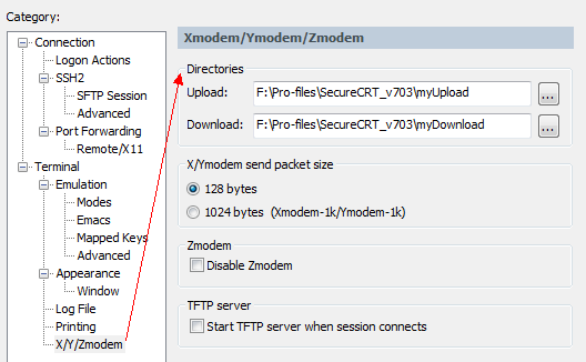 zmodem接收可以自行启动,下载的文件存放在你设定的默认下载目录下(上图 Directories设置上传和下载的目录 设置的目录)