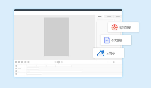 支持输出多种视频格式,如mp4/mov/wmv/avi/flv/mkv;高清输出,LED大屏播放毫无压力;还支持输出GIF动图; 一键上传云端,轻松分享至微信、QQ、微博等社交平台。
