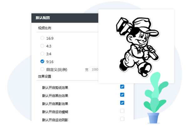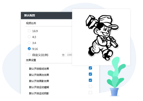 文字和图片支持添加剪纸/黑白/黑影效果。 剪纸(贴纸)效果可使文字/图片立体突出;还可按需选择黑白、抖音风黑影效果。