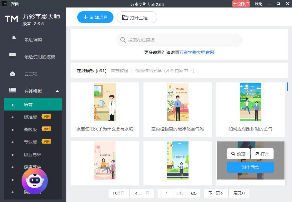 内置了海量精美模板,包含了各种类型,如幽默搞笑、销售口才、情感百科、健康养生等,一键套用。