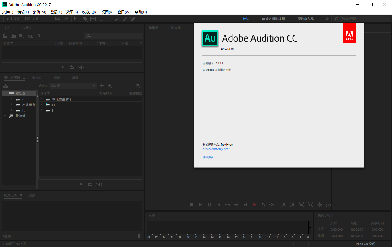 Adobe Audition CC 2017是一款专业音频处理软件,具有音频录制、音频编辑、音频混合、音频降噪、设计音效效果、多轨混音、母带处理、现场调音、编辑视频音轨、音频转码等功能,支持多音轨及多种音频特效与音频格式。Audition最多混合 128 个声道,可编辑单个音频文件,创建回路并可使用 45 种以上的数字信号处理效果。另外Audition CC 2017提供了数百种免版税的音效和超过12000种的免费音效供您选择,让您可以随意在录制文件中增加全新的声调、情绪或喜剧效果。