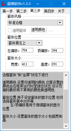 窗体位置:用于设定窗体的显示位置,也可选择窗体居中对齐等