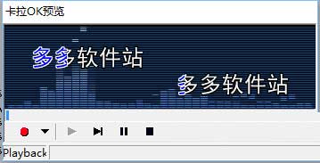 5、重复上面的操作,将整首歌曲的歌词填写完毕,点工具栏上的“OK”按钮或者从菜单中选“操作(O) “卡拉OK预览”(F4),程序弹出一个预览窗口,显示预览效果,如下图所示: