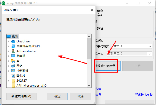 3、点击扫描目录,选择下载歌曲的文件夹即可。