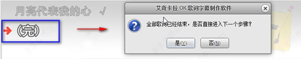 --当最后一行歌词的最后一个字演唱结束后,再次敲击键盘右方向键,整首歌曲制作结束;此时,可以根据软件提示直接进入下一步。