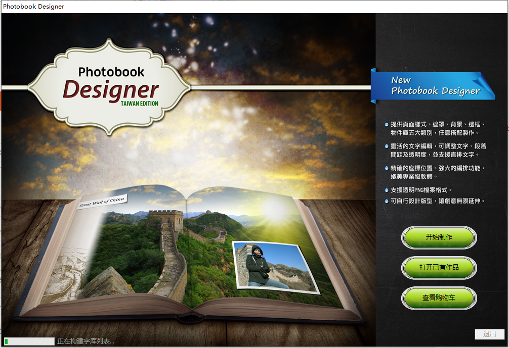 启动软件,点选建立新作品。依序选择你想制作的产品类别、相册类型及产品尺寸。