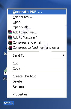 1、在本页下载并安装LilyPond后,双击桌面上的图标,乐谱文件例子将打开。