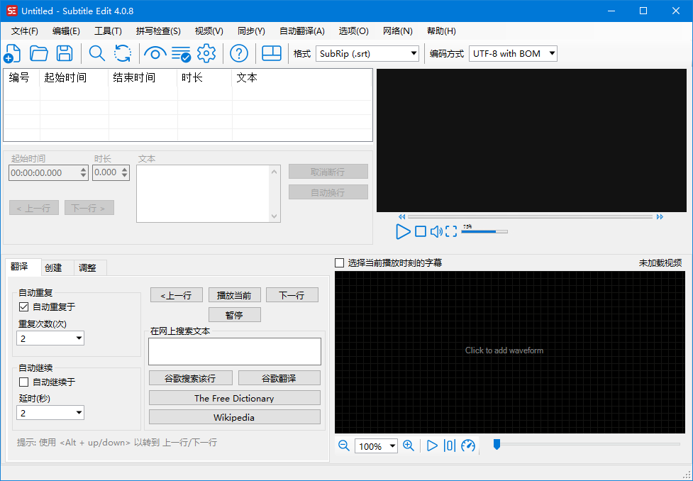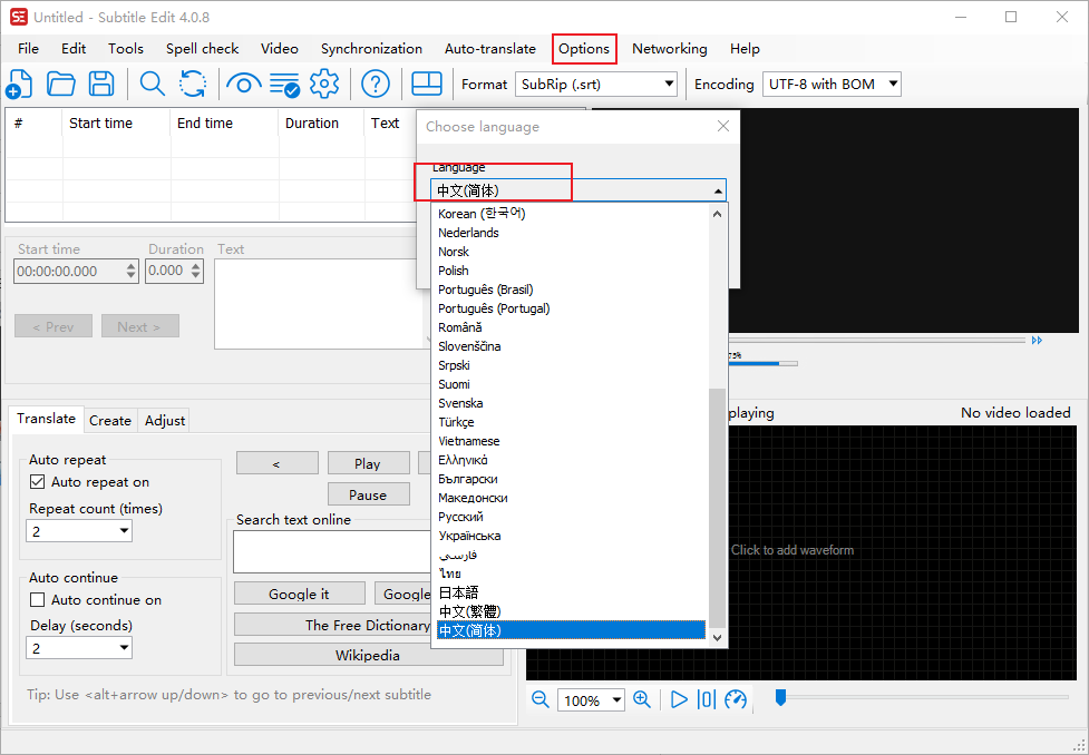 Subtitle Edit中文语言设置说明