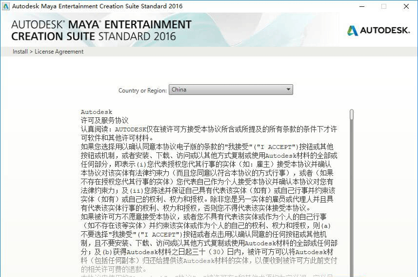1、下载解压,得到Autodesk Maya 2016中文版原程序和注册机,首先运行安装程序,选择解压目录,目录不要带有中文字符,安装包软件大小为6.21GB