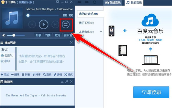 2、在千千静听播放器的窗口上,点击“二根箭头”的按钮。
