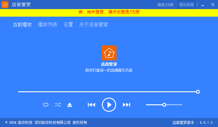 店音管家电脑版是由店音官方(助你科技)推出的一款店铺专用音乐播放器。它是一款独立、封闭、智能的播放器,颠覆现有的播放方式,门店不需要做任何操作,让您的店员释放额外的工作量。