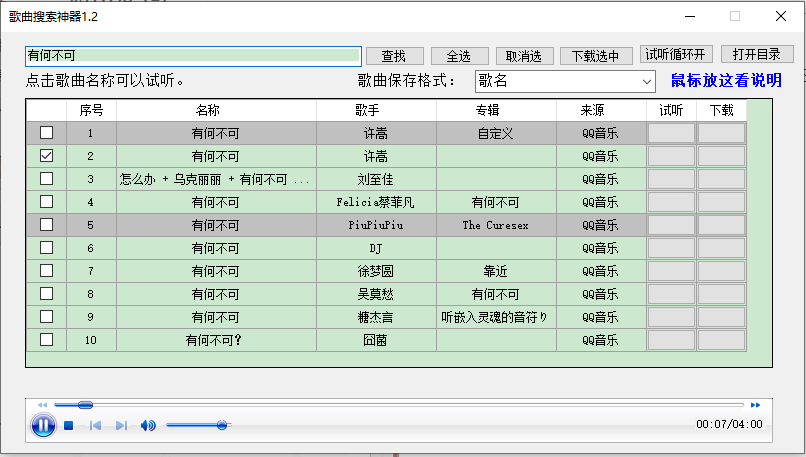 7、歌曲搜索神器支持保存所有搜索结果,方便播放。