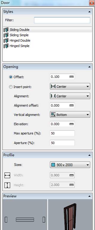 8、当然还有更厉害的,我们接下来创建门。同样单击创建门工具,弹出属性栏: