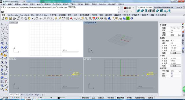 1、打开一个以米为单位的Visual ARQ模板文件,即进入了Visual ARQ的建模环境。如下图: