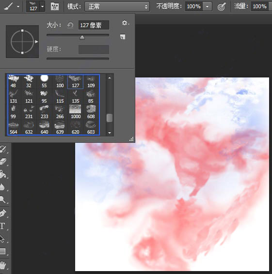4、找到最后的画笔就是ps云朵笔刷,拥有多种不同的笔触,用户可以调整大小直接放在图片上使用。