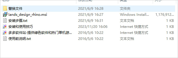 1、下载解压后得到lands design for rhino源程序和替换文件;