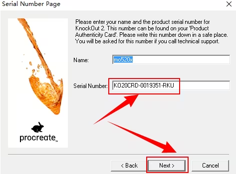 2、输入产品序列号【KO20CRD-0019351-RKU】;