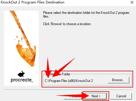 2、一般安装时,会提示填2次目录位置,第一个是Knockout2.0的主程序目录,可自己填,运行KnockOut 2_P1.exe汉化时就是这个位置;第二个是你PS滤镜库目录所在,按照教程中填即可;