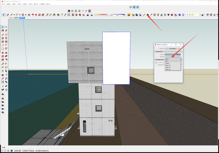 5、建立个box,如图选择object properities——boolean,看见好多选项没,先来个box