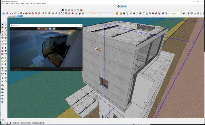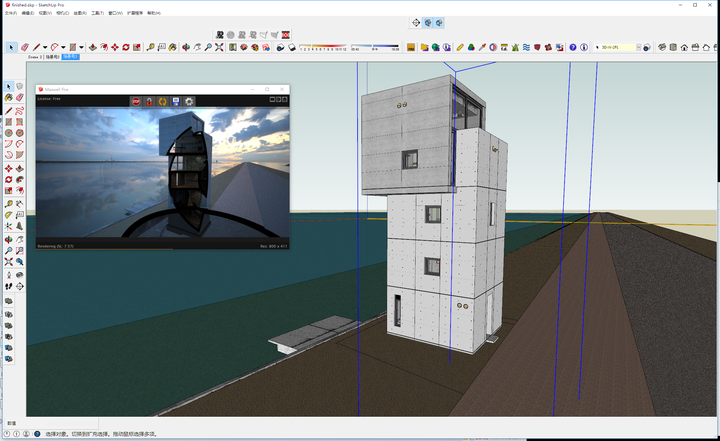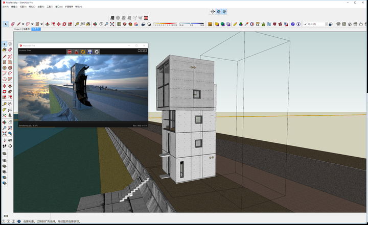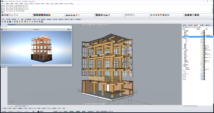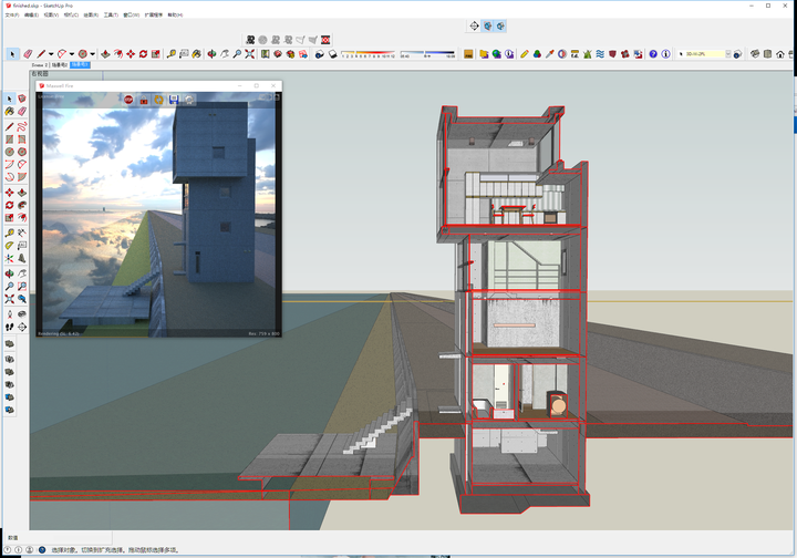 1、打开一个模型,在rhino里使用剖面工具,在Maxwell里预览,会看见实时渲染的画面中也变成了剖透视。