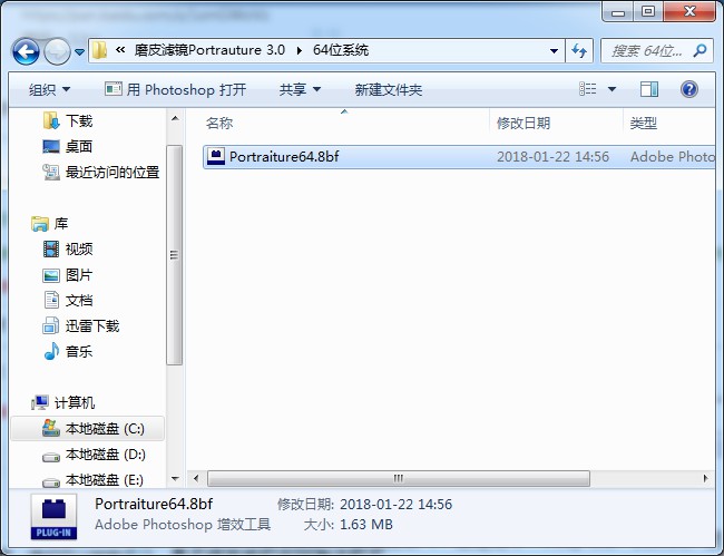 1、软件下载解压完成后,点击打开软件包,里面有32位和64位两个软件,请根据你的ps版本选择插件类型,选择好后复制插件。