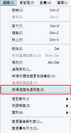 (1)选择[编辑]选单→[将辉度变为透明度]。