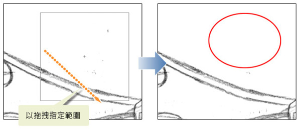 (3)以拖拽大略圈选有污点的部分后,在[垃圾尺寸]指定尺寸以下的污点会消失。范围圈选到线稿的一部分也没有关系。
