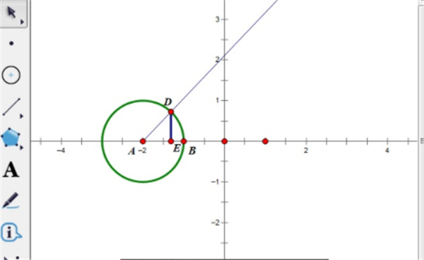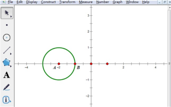 步骤二 在空白处右击鼠标,在弹出的对话框中点“绘制点”,绘制两个点A(-2,0),B(-1,0),按顺序选中点A、B,在菜单栏里选择“构造”——“以圆心和圆周上的点绘圆”,构造一个单位圆。拖动单位点调整单位长度。