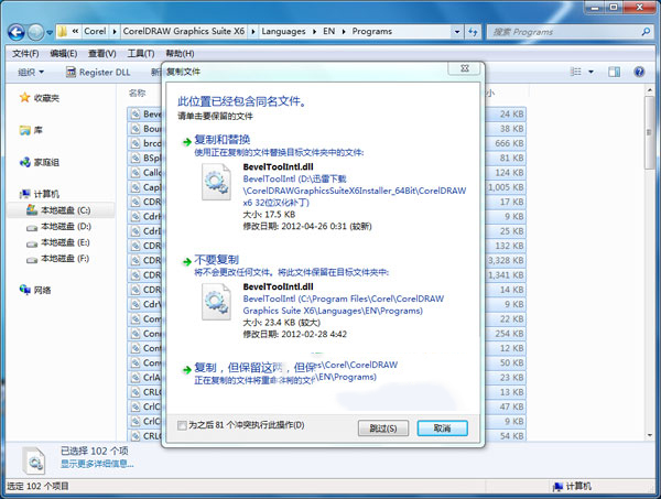 2、复制到CorelDRAW Graphics Suite X6\Languages\EN\Programs目录下,替换同名文件